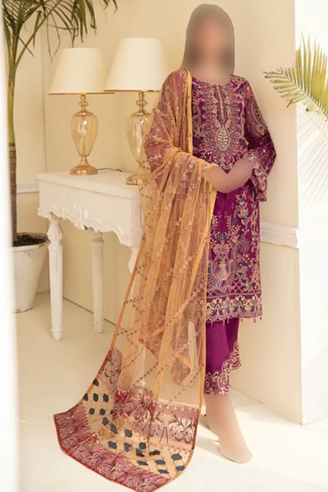 Multi-Sequence Embroidered Front: 1.5 yards of crinkal chiffon Sequence Embroidered Back: 1.5 yards of net...