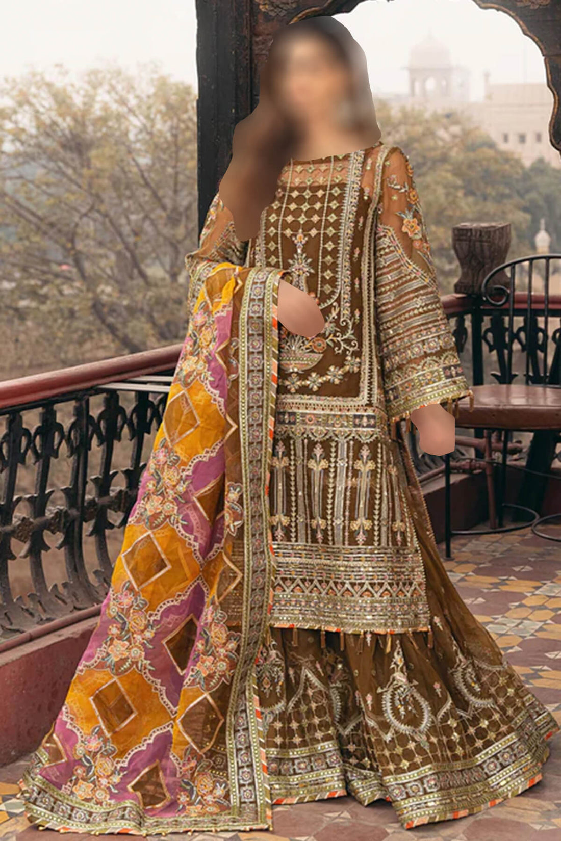 Front: 1 yard of organza, fully handmade Embroidered Back: 1 yard of organza Sleeves: 0.75...