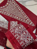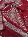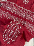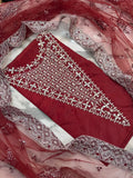 4PC RED RAW SILK FANCY SUIT FULLY. EMBROIDERED WORK